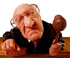 documentos foram ao chão. O juiz franziu o cenho e estava